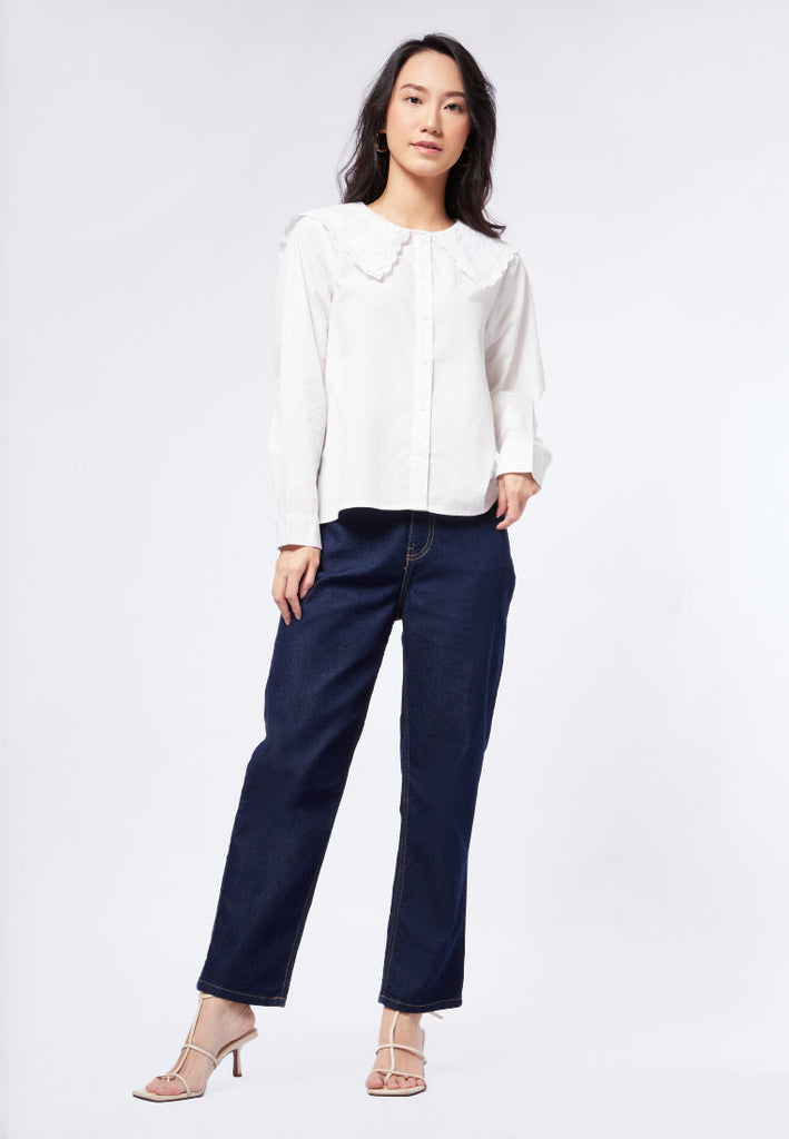 Loose Blouse with Laced Peterpan Collar
