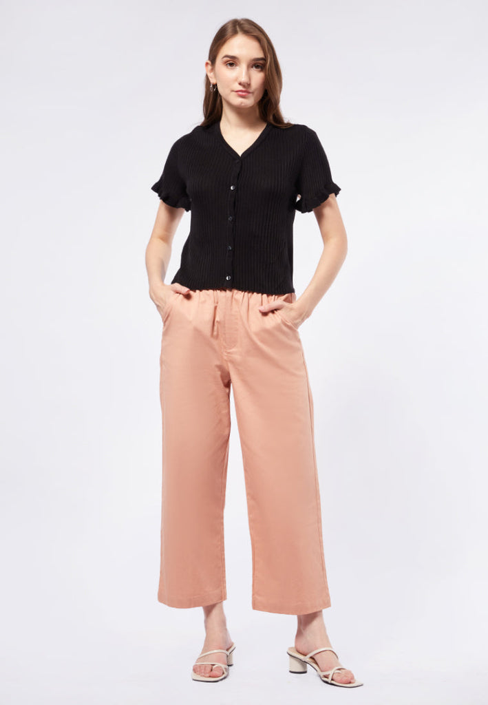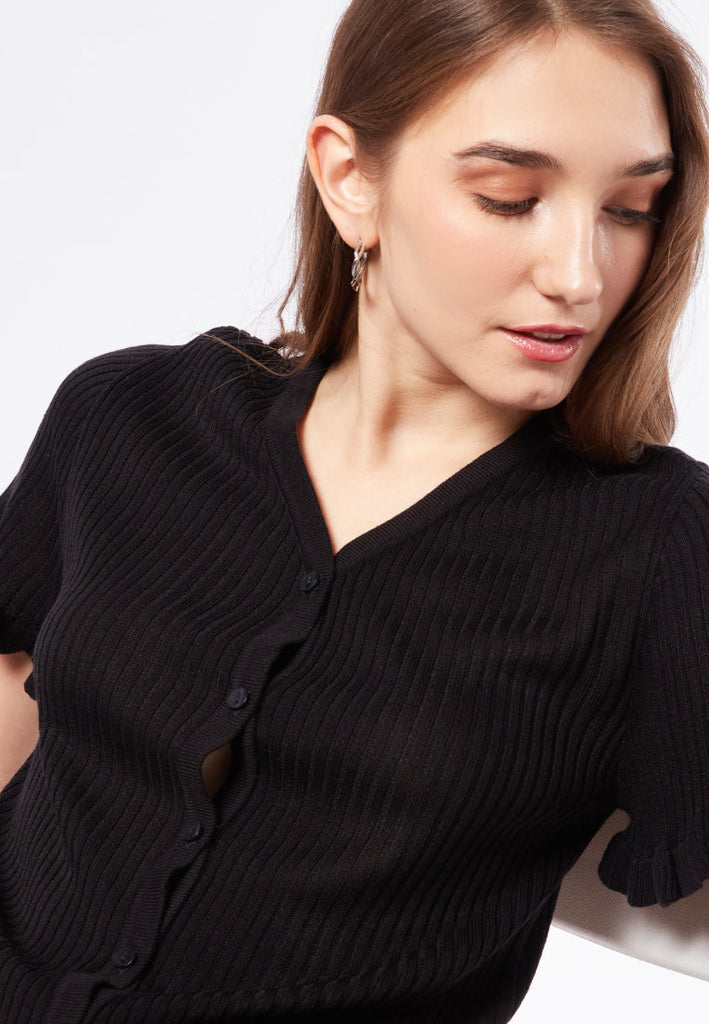 Rib Top with Frill Sleeve Details