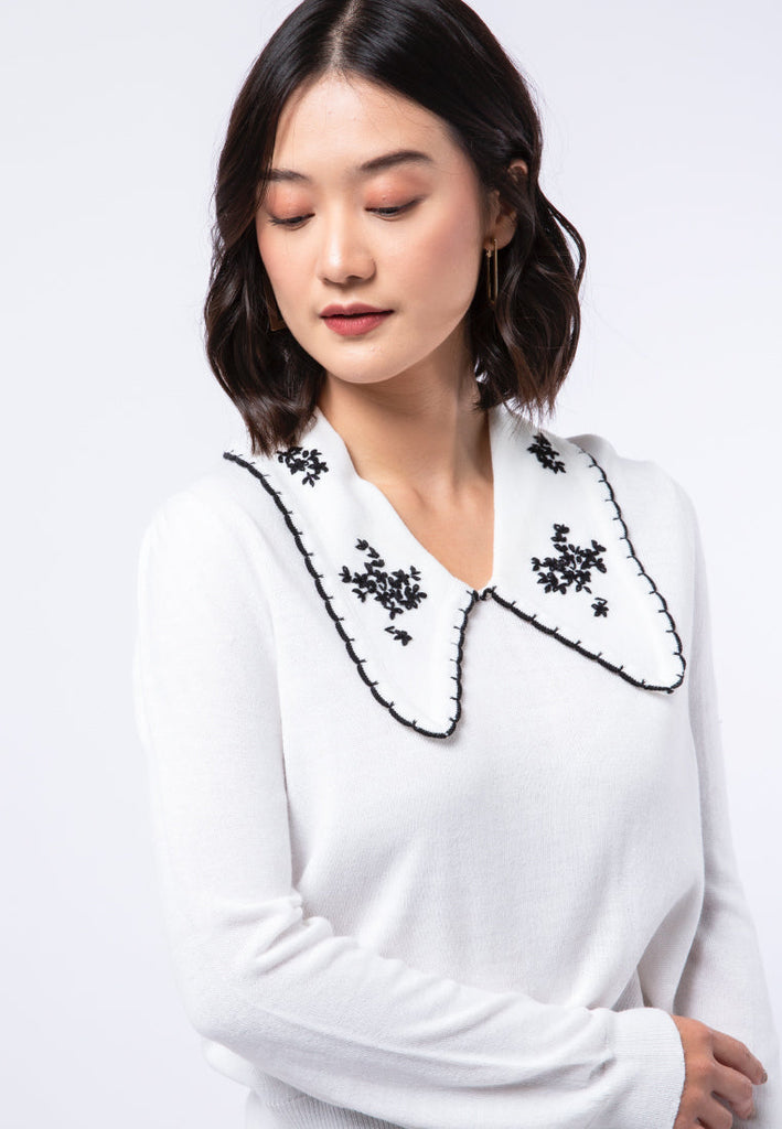 Sweater with Embriodered Collar