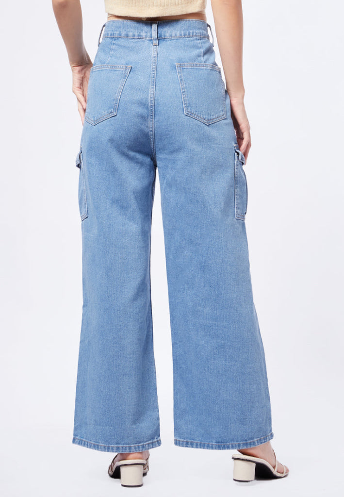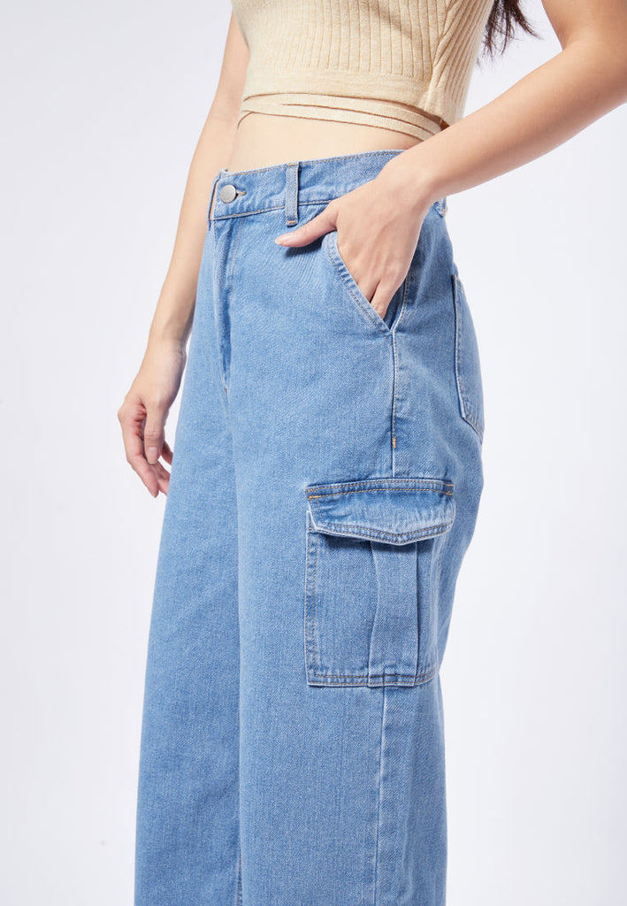 Wide Leg Denim Pants with Cargo Pocket