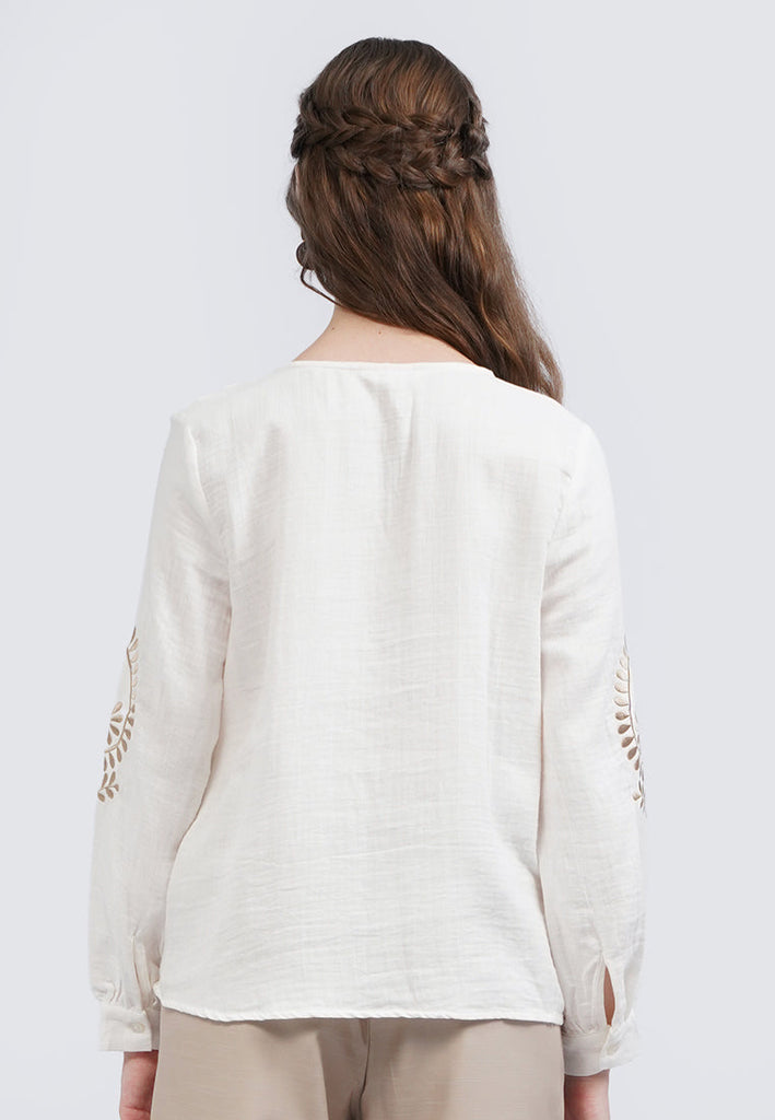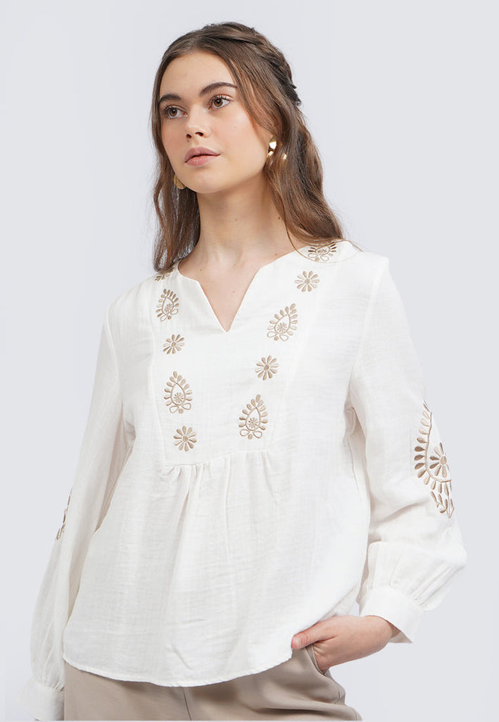 V-Neck Embroidered Long Sleeve Blouse