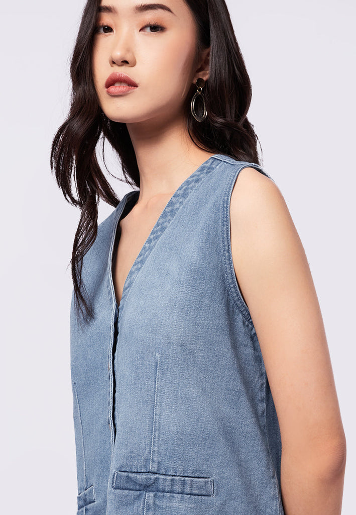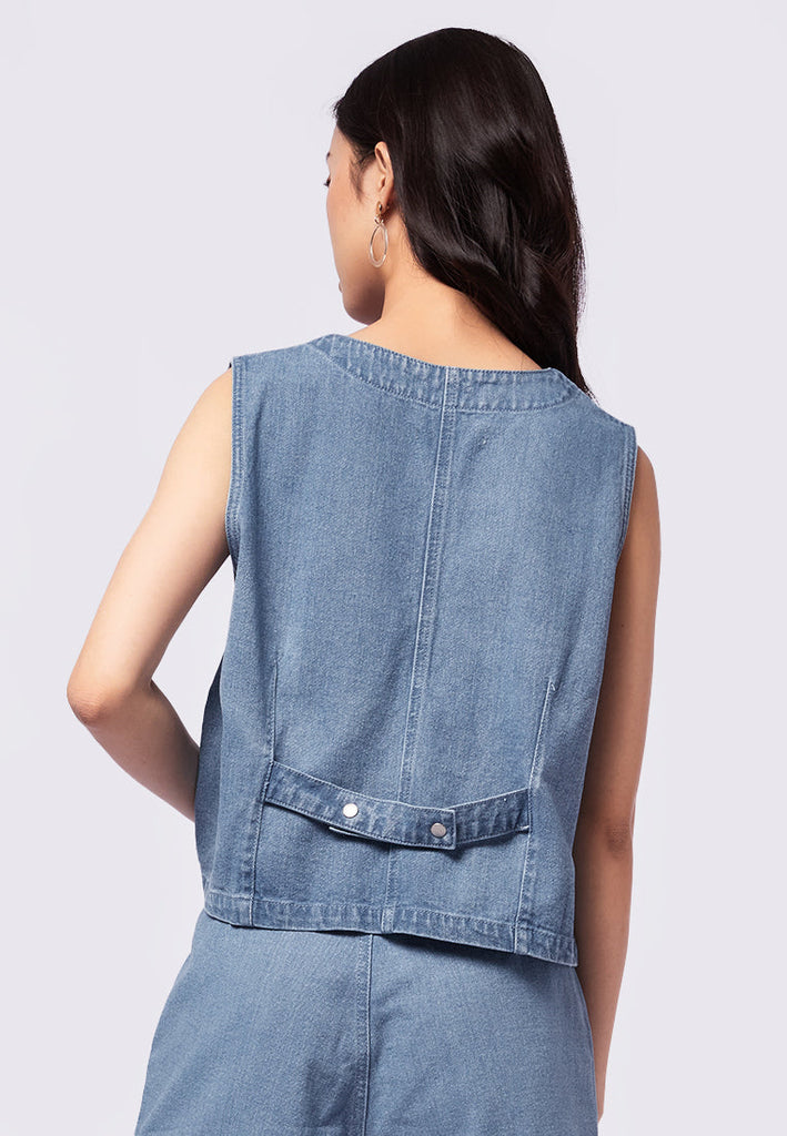 Denim Vest with Fake Pocket Details
