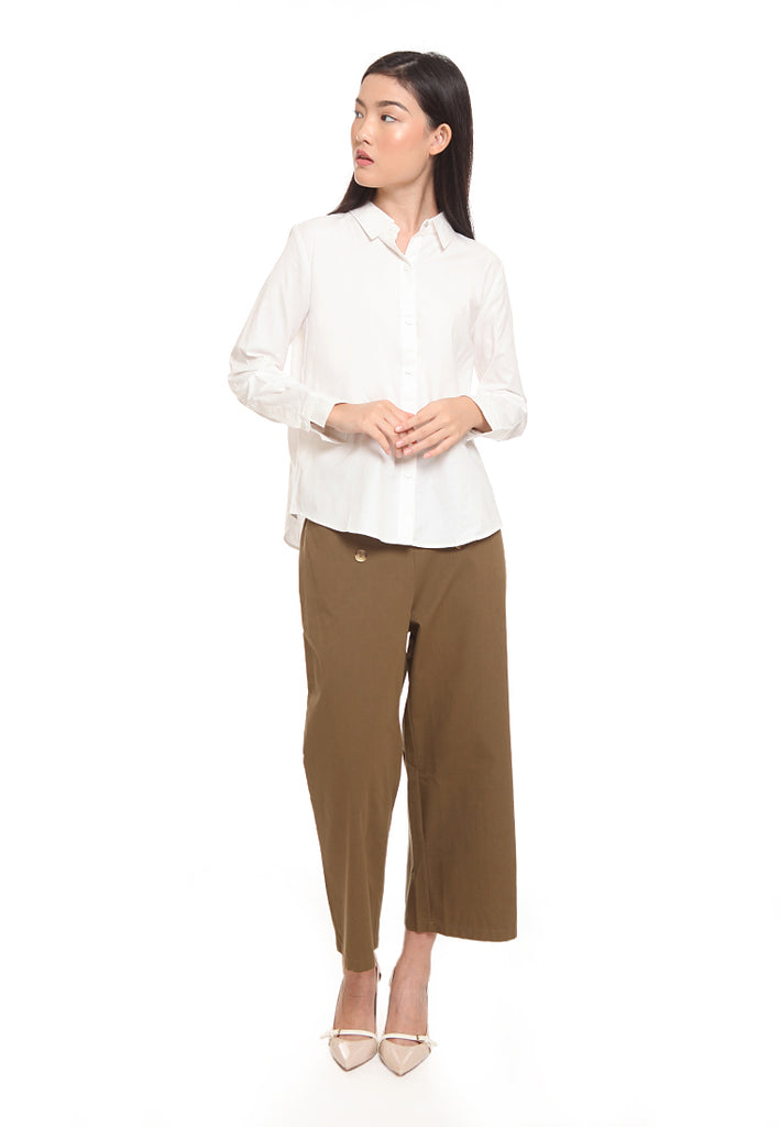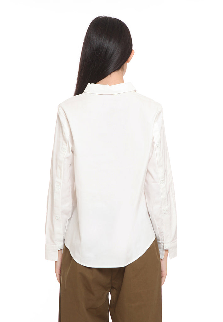 - Straight Point Collar With Button Slit At Wrist Cuff
