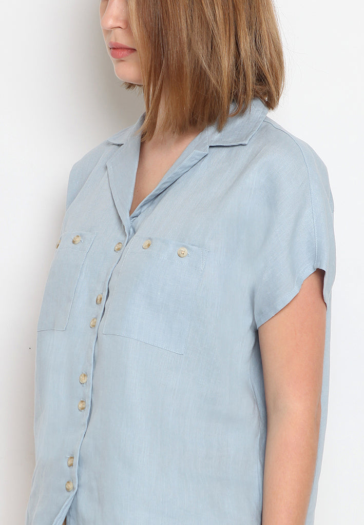 Open Collar Short Sleeve Blouse