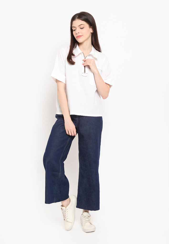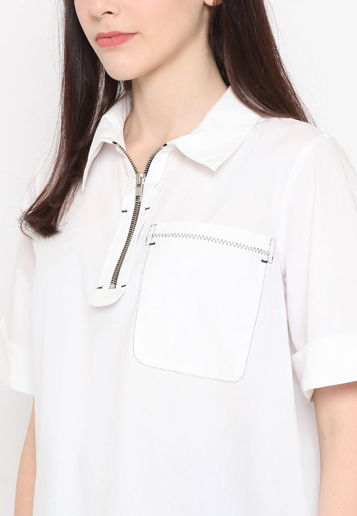 - Shirt collar with front metal zipper detail