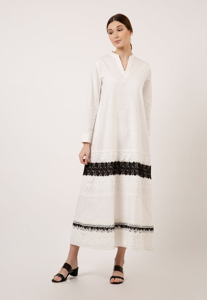 Wide Bottom Maxi Dress With Fancy Tape Details
