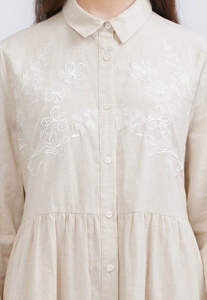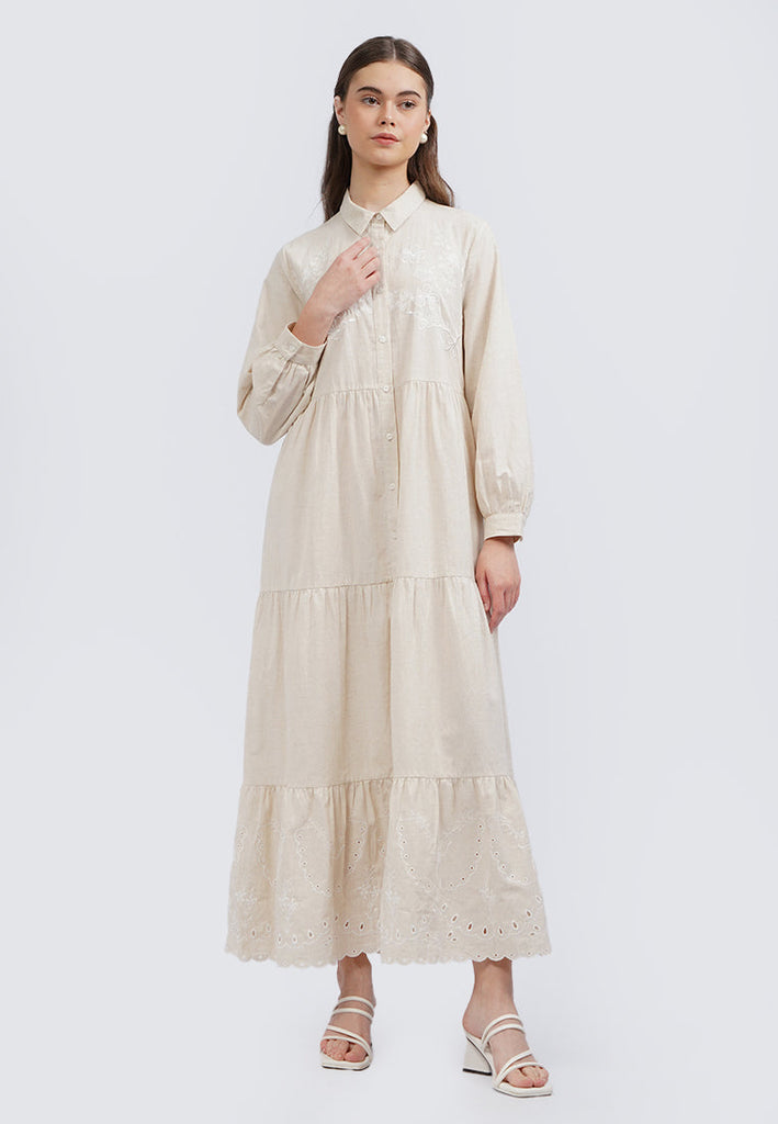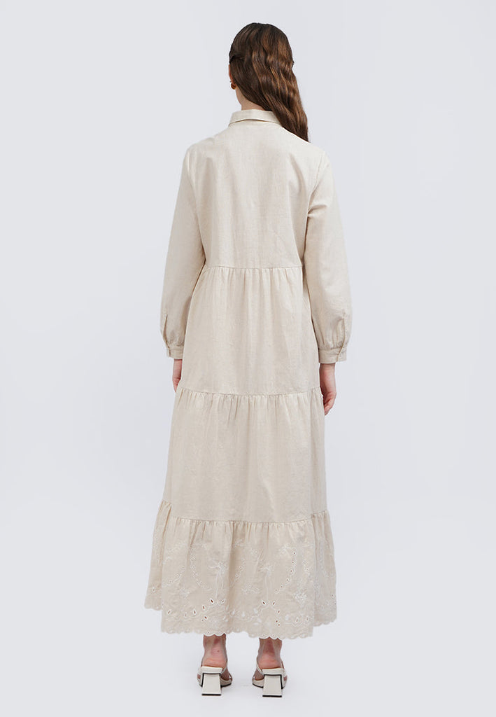 Embroidered Long Sleeve Maxi Dress