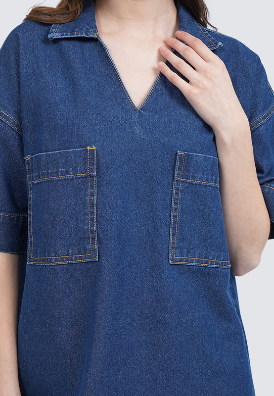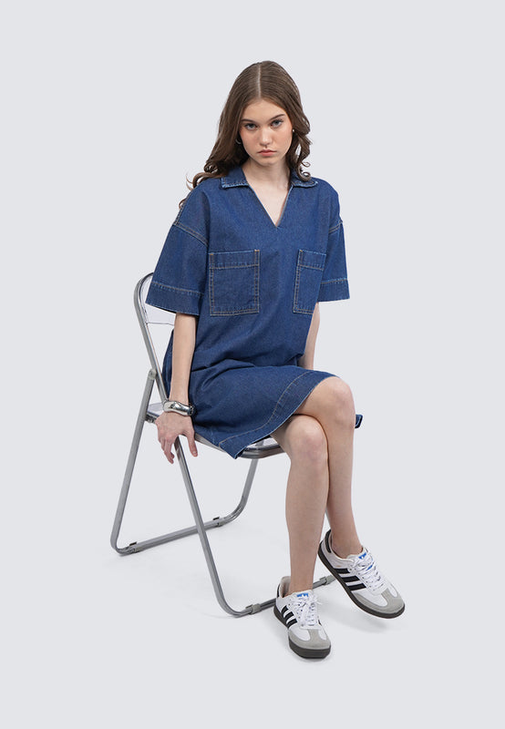 V-Neck Mini Denim Dress