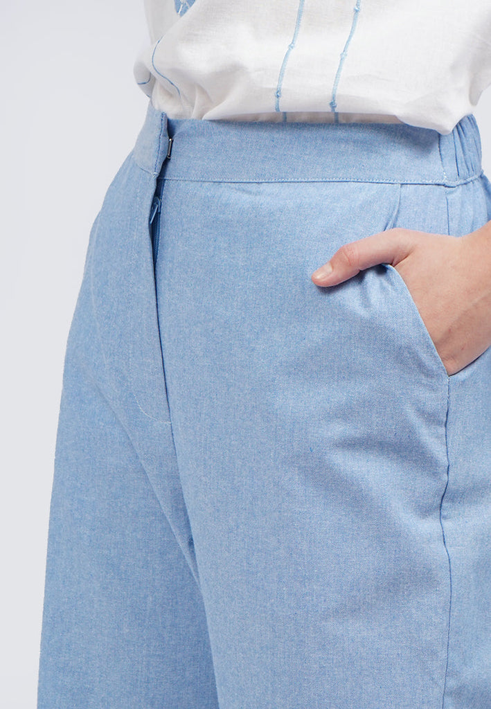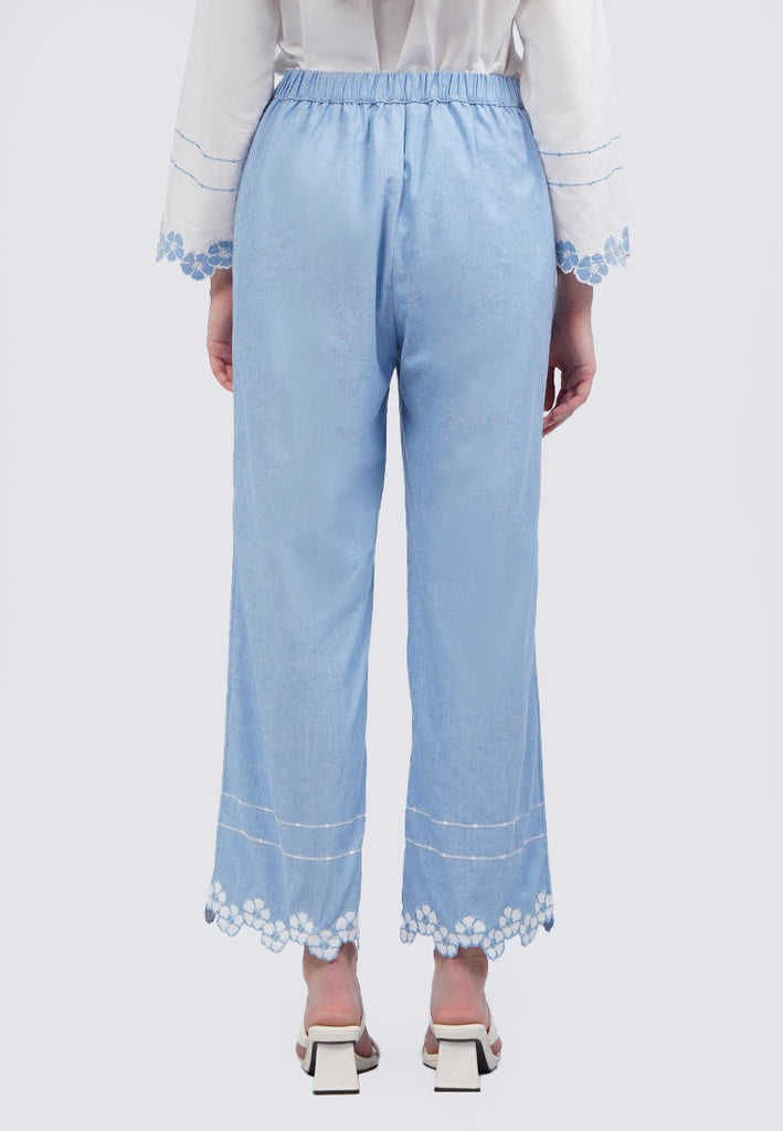 Embroidered Hem Linen Blend Pants