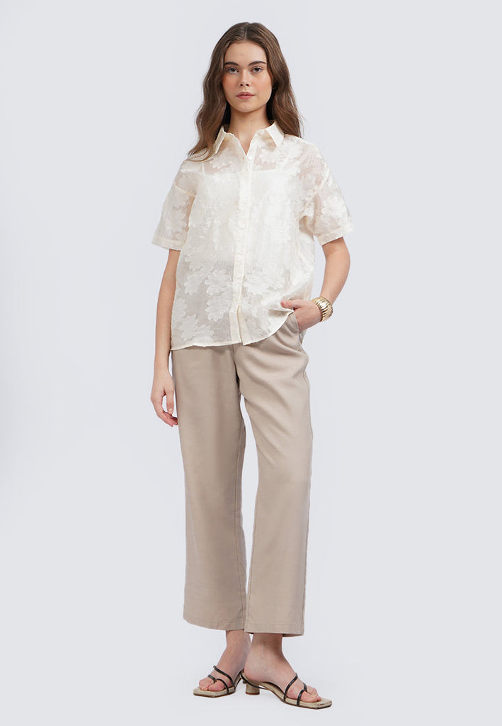 Straight Fit Pants with Elastic Back