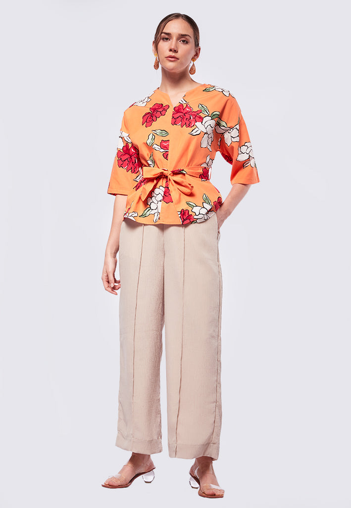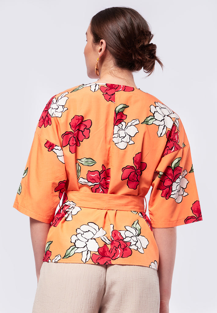 Printed V-Neck Short Sleeve Blouse