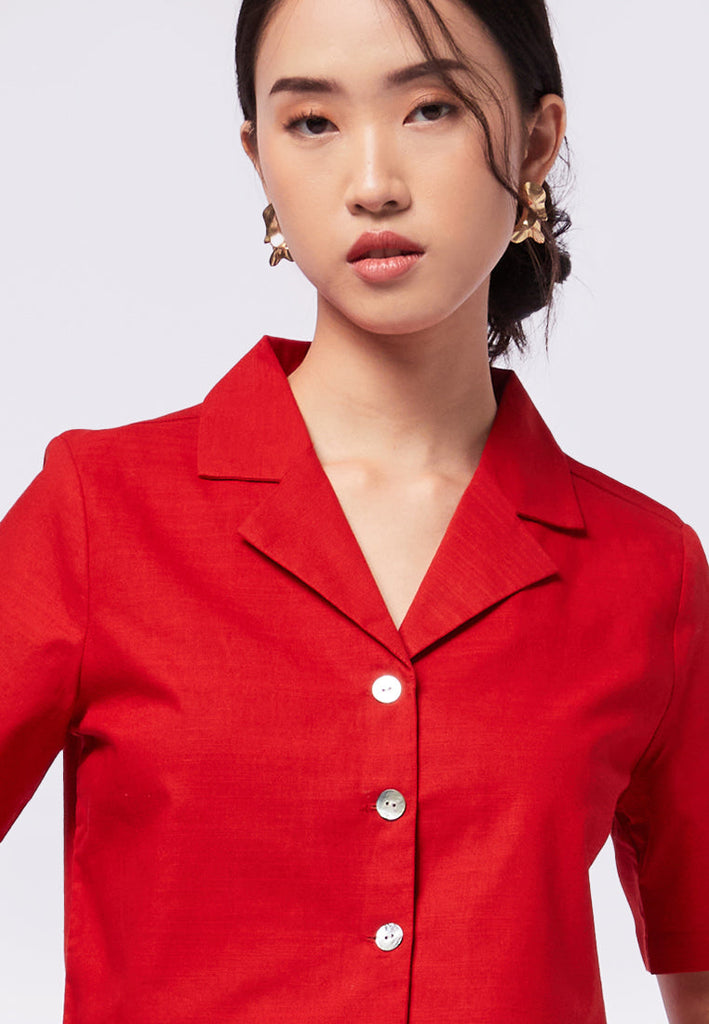 Tailored Collar Short Sleeve Blouse