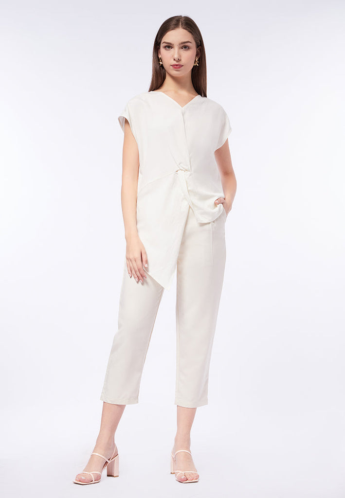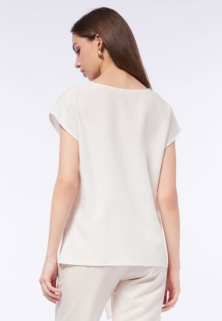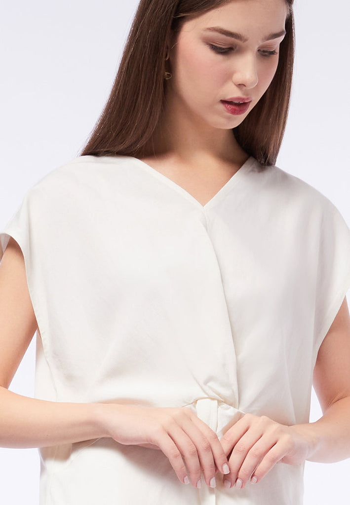 V-Neck Drapery Short Sleeve Blouse