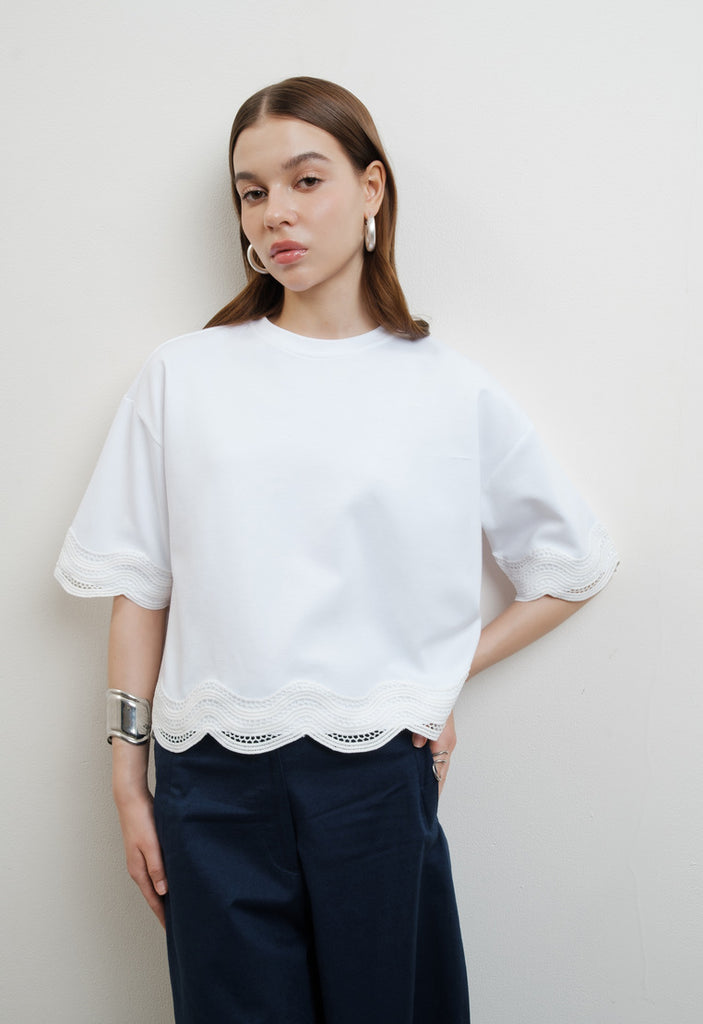 Eyelet Details Short Sleeve Top