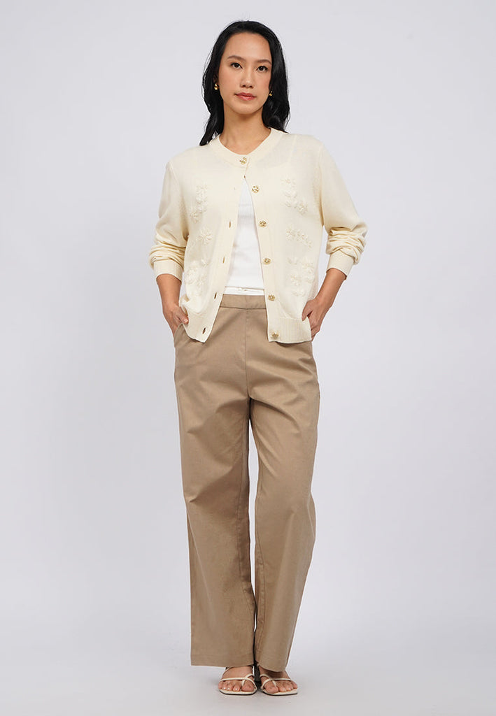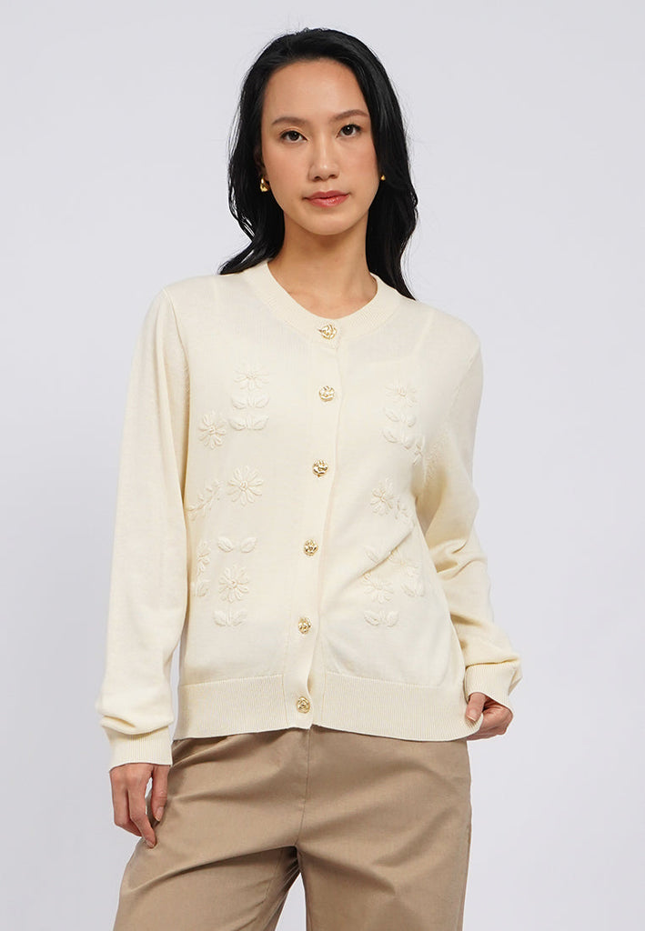 Embroidered Round Neck Cardigan
