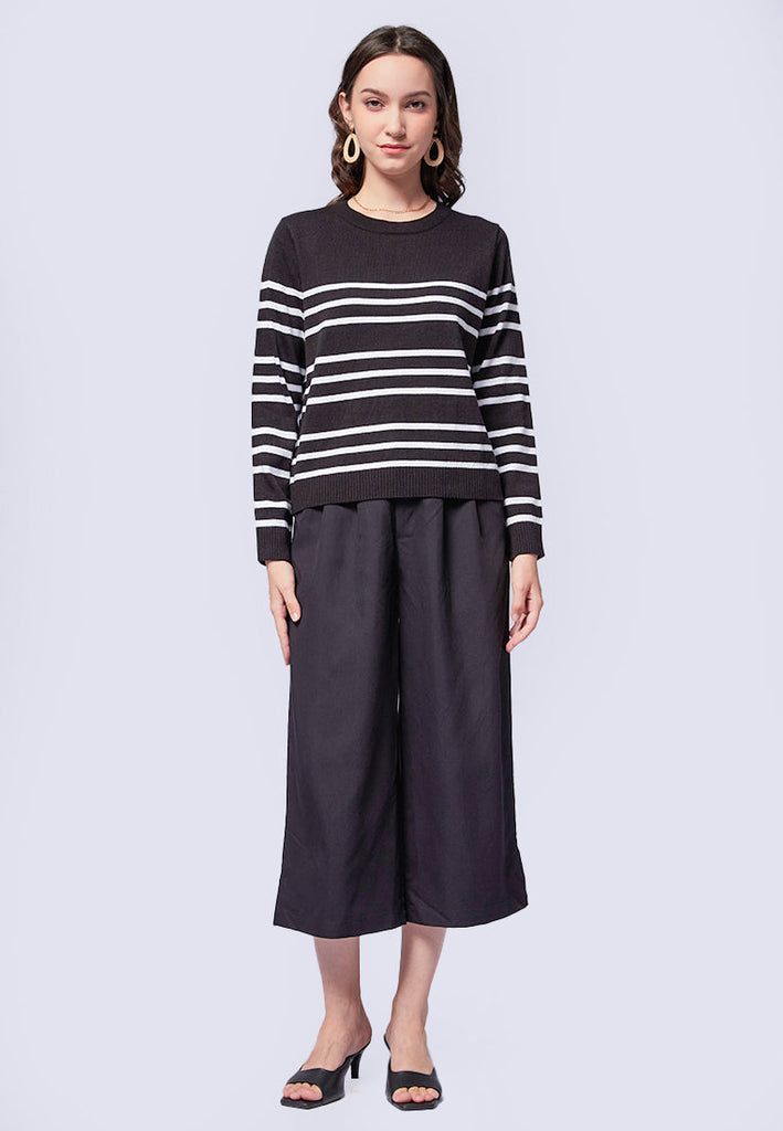 Boat Neck Stripe Knit Sweater
