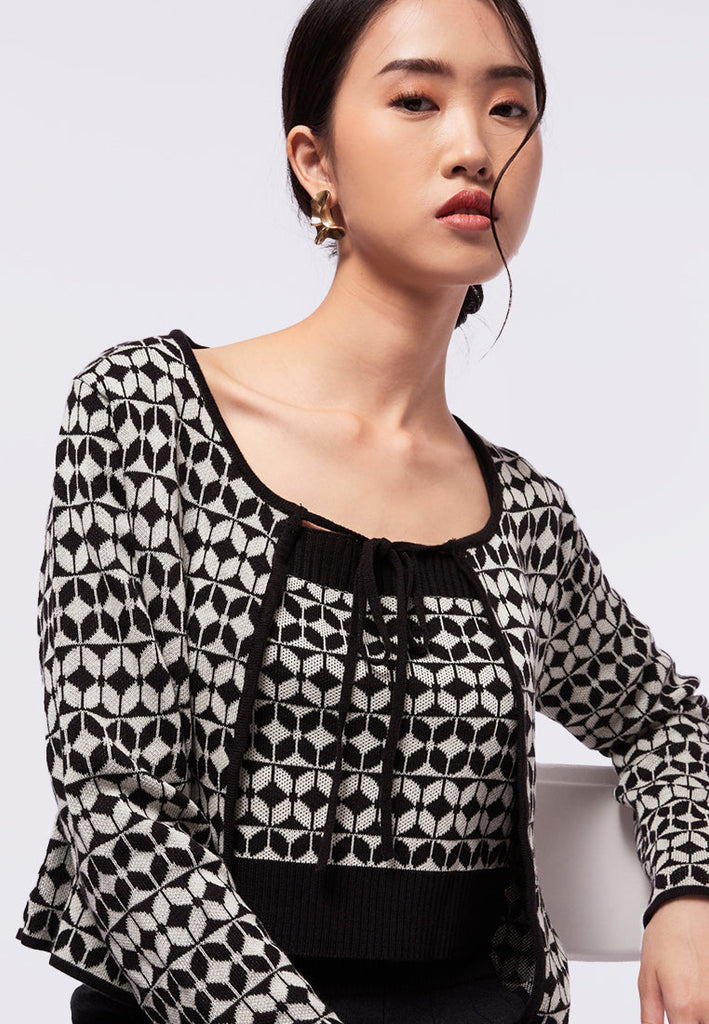Printed Cardigan with Tie Closure