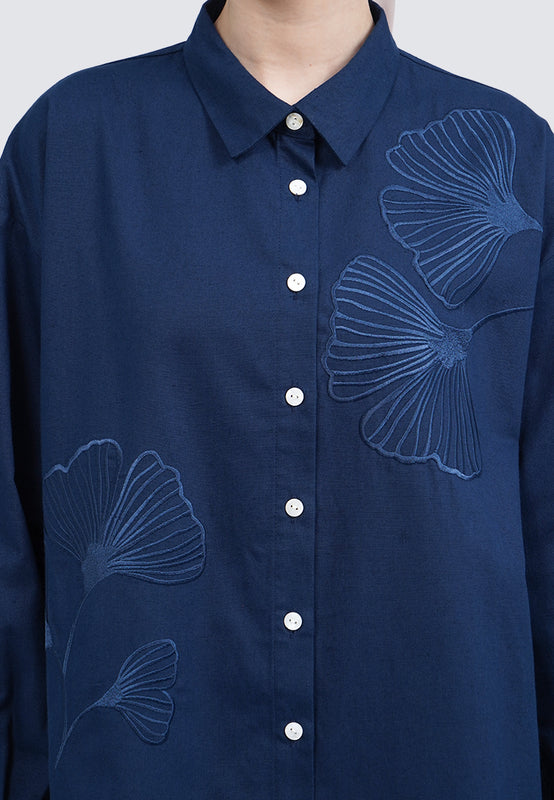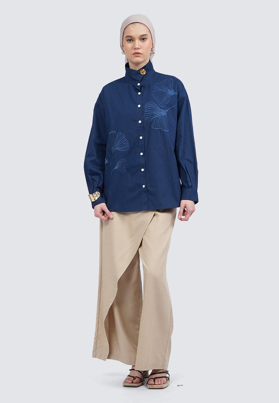 Embroidered Long Sleeve Linen Blouse