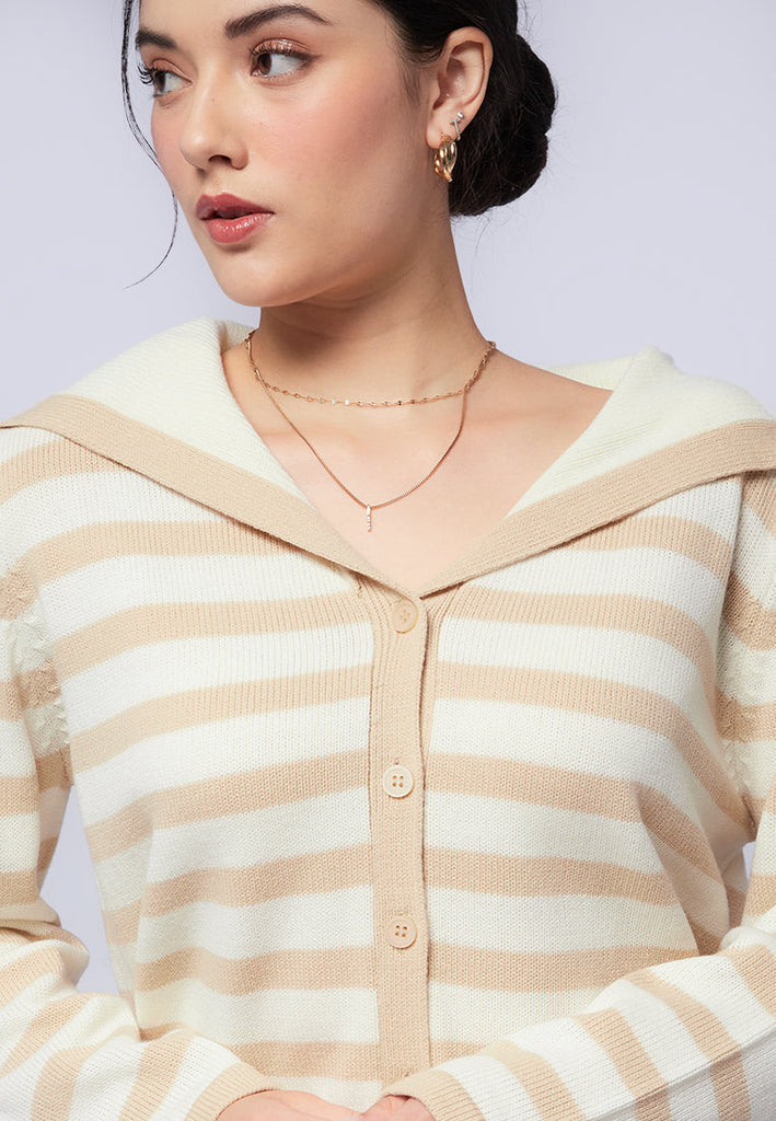 Big Collar Striped Cardigan