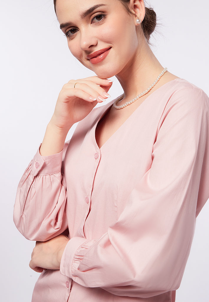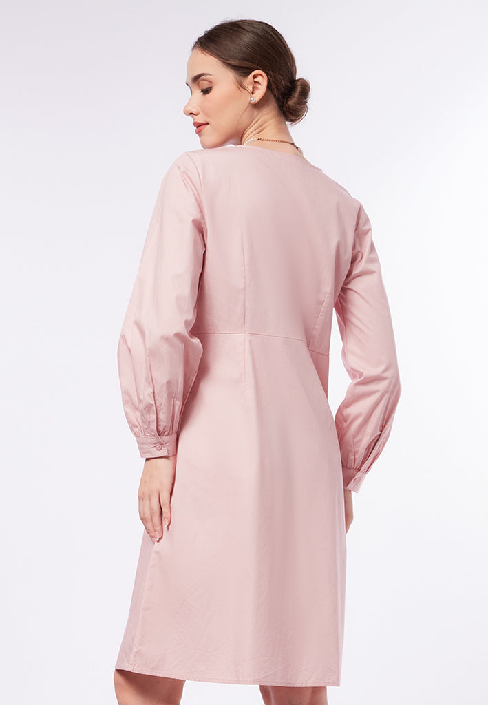 V-Neck Puff Sleeves Midi Dress
