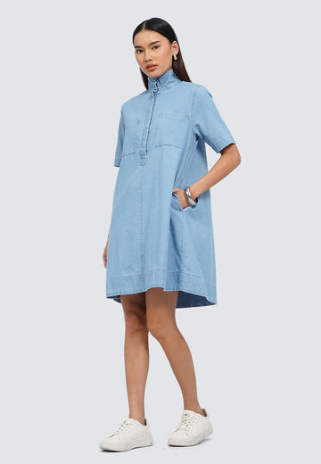 Double Pocket Denim Midi Dress