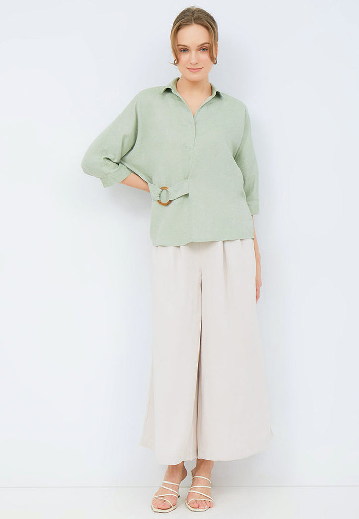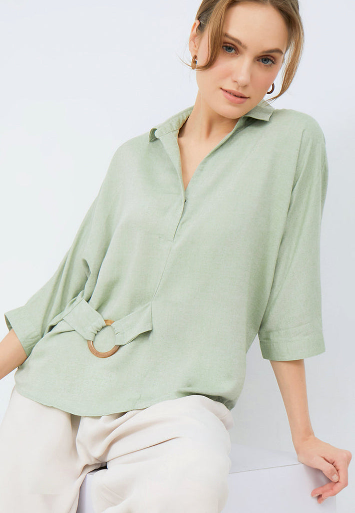3/4 Sleeve Blouse with Buckle Details