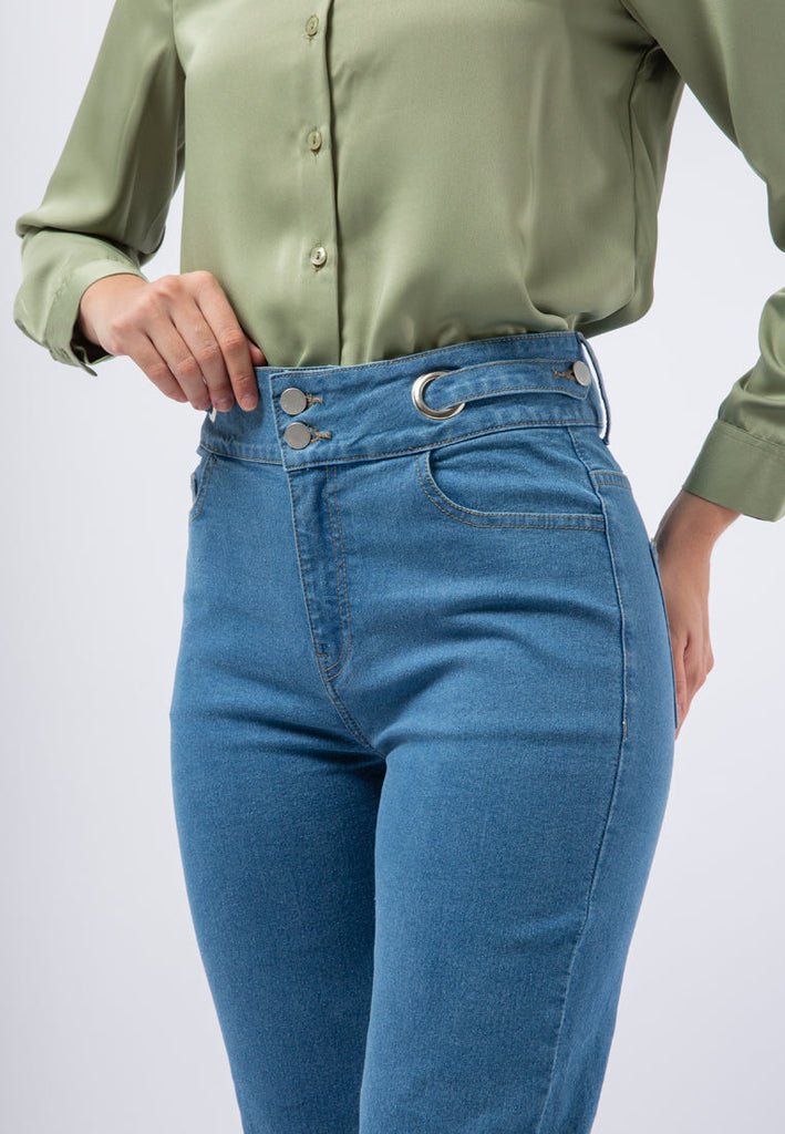 High Waist Denim with Eyelet Details