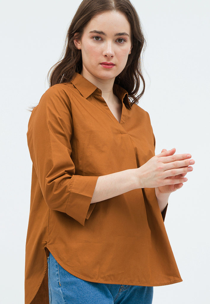 Long Sleeve Blouse with Open Collar
