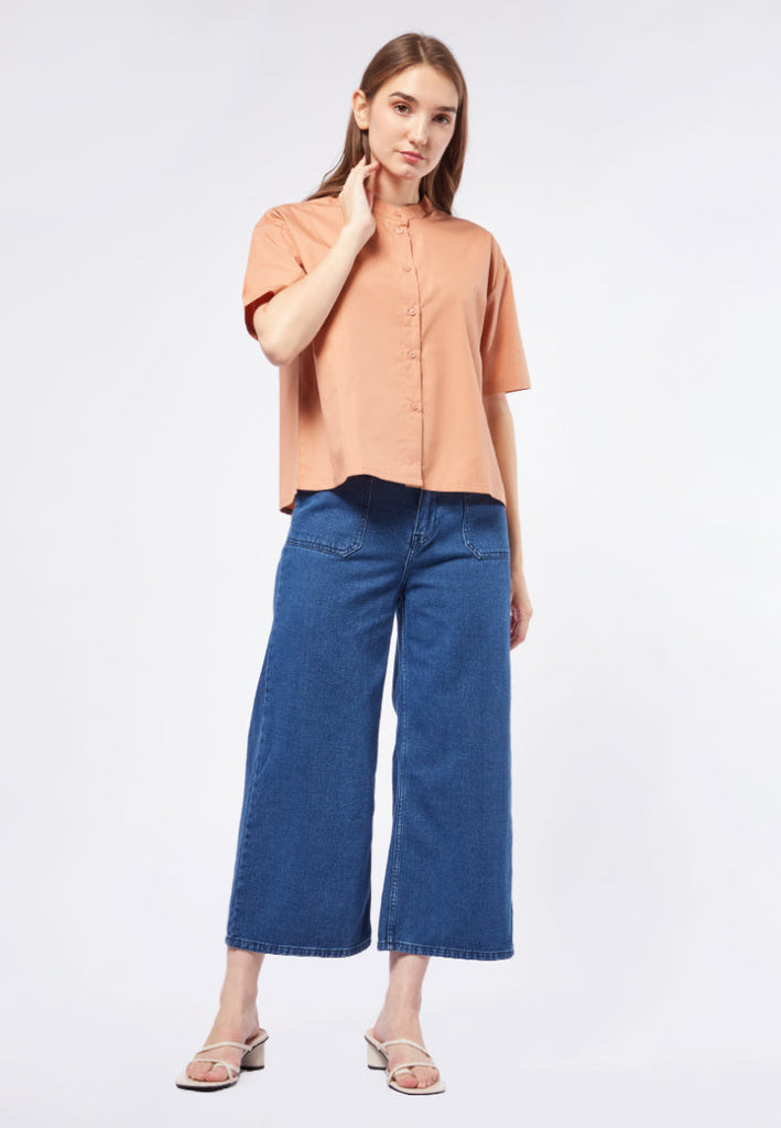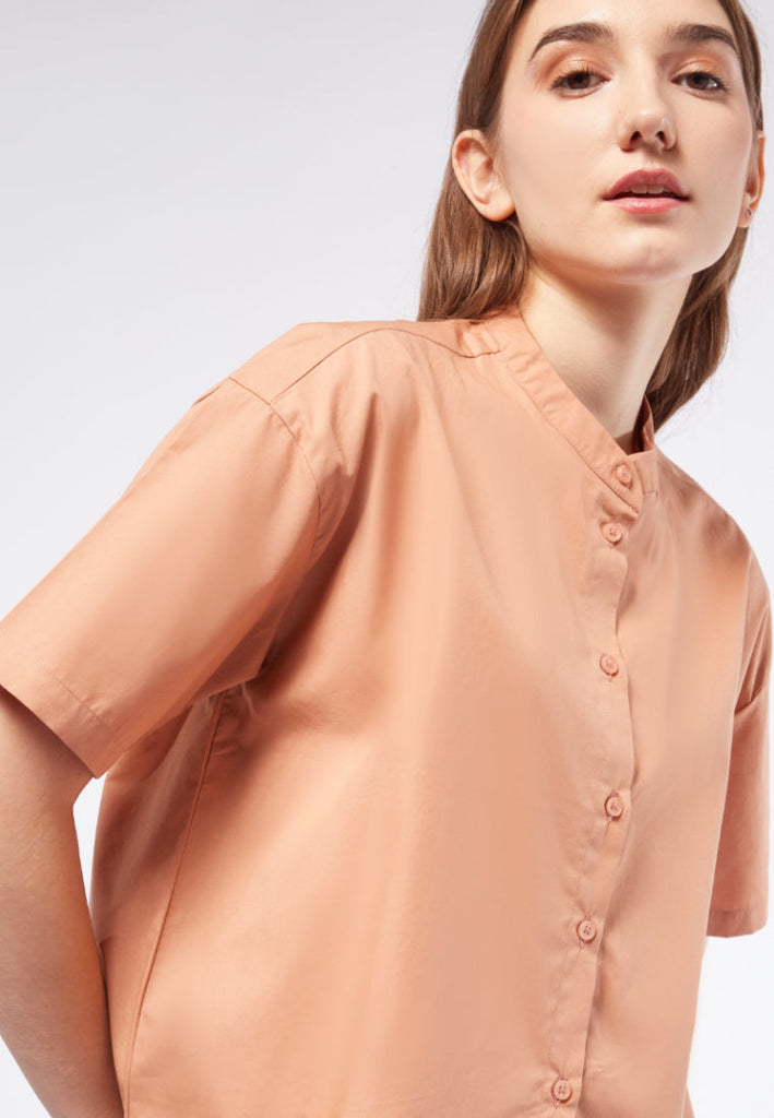 Mandarin Collar Short Sleeve Blouse