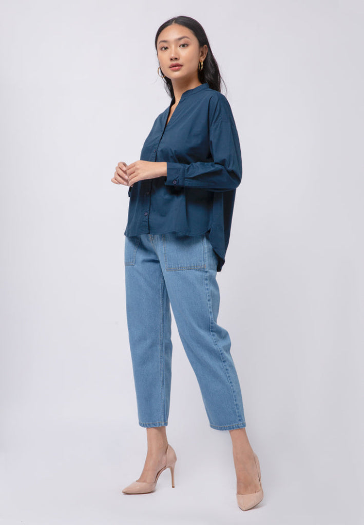 Mandarin Collar Long Sleeve Blouse