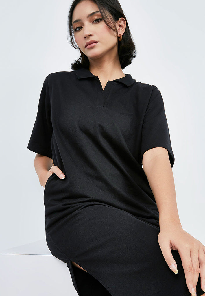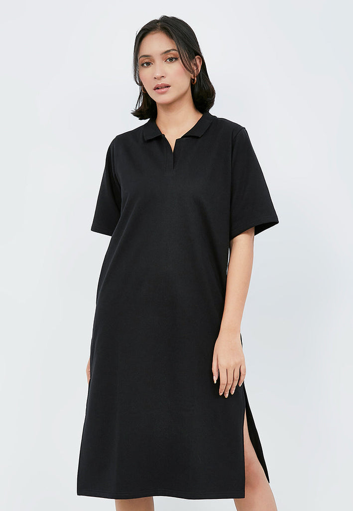 Midi Polo Dress with Side Slit Details