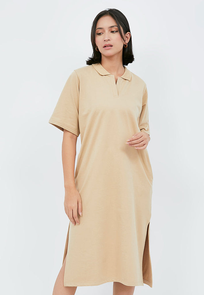 Midi Polo Dress with Side Slit Details