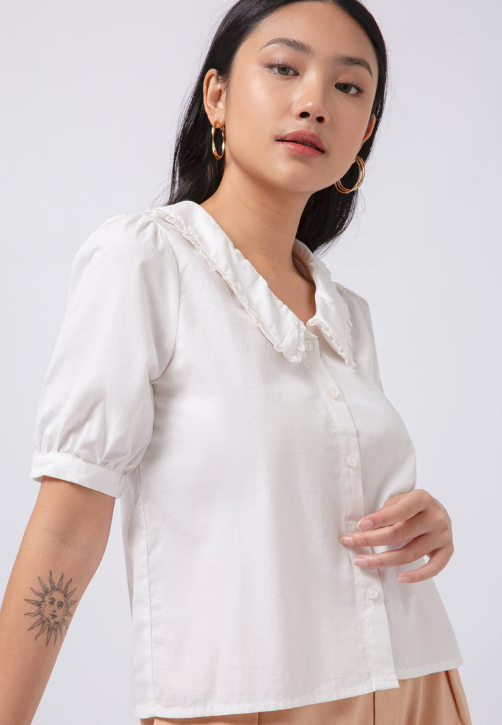 Puff Sleeves Blouse with Frill Collar