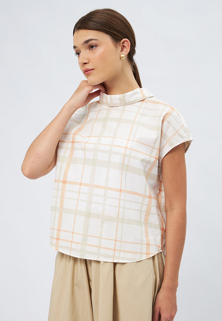 Short Sleeve Plaid Blouse