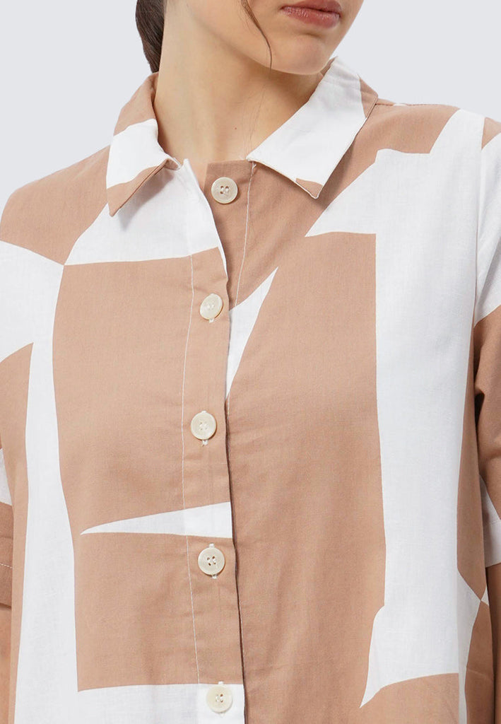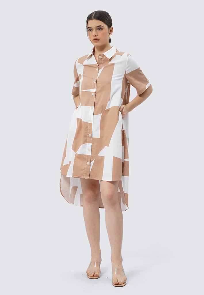 Short Sleeve Printed Shirt Dress