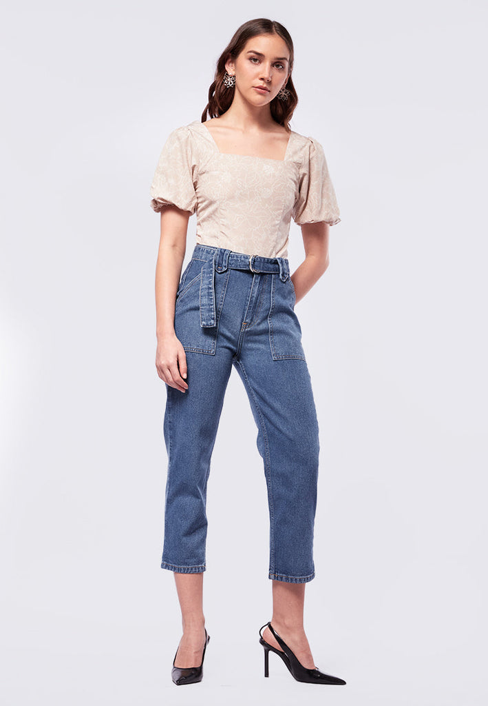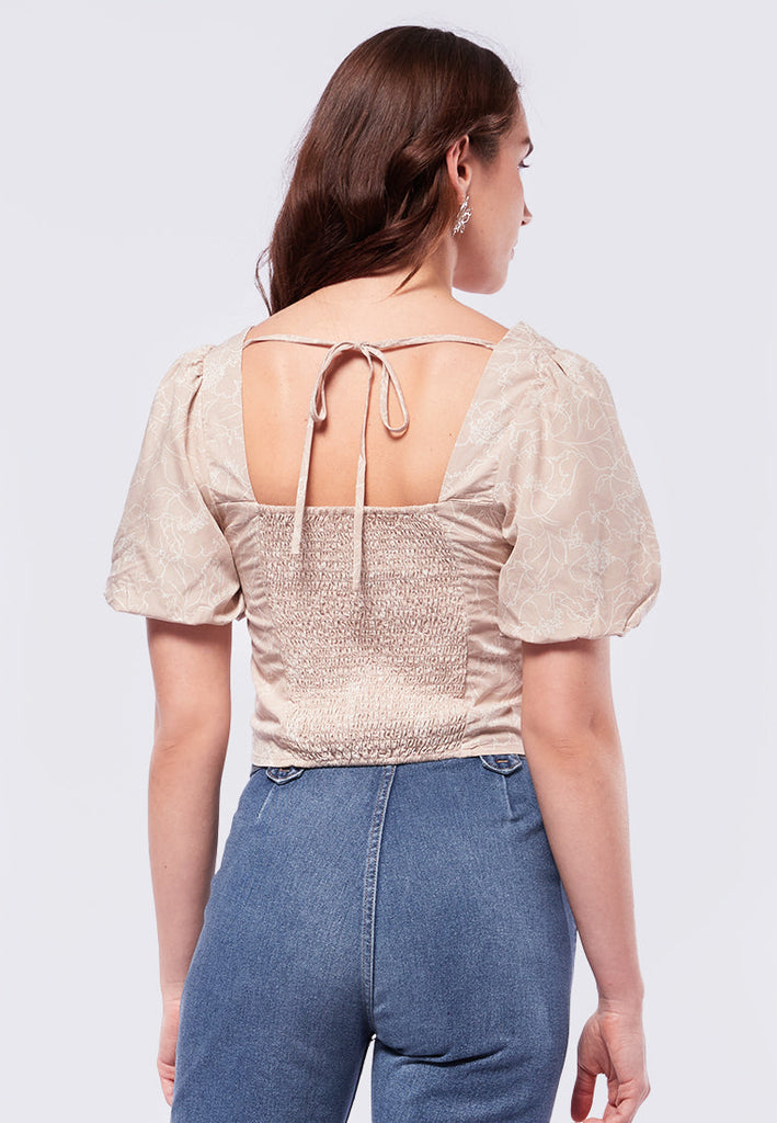 Square Neck Printed Short Sleeve Blouse