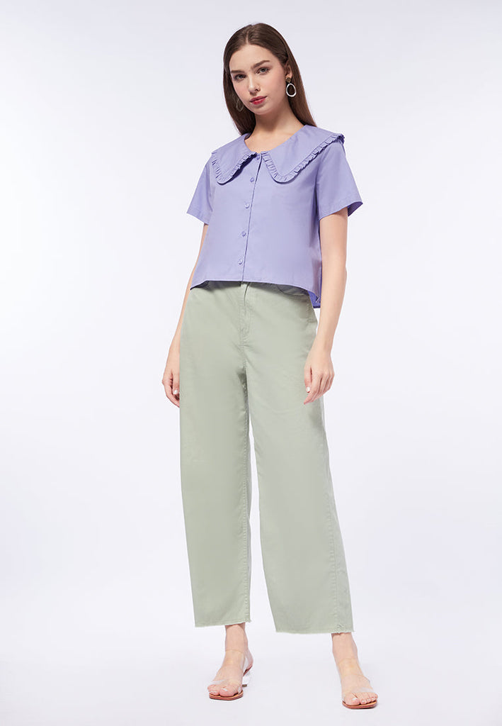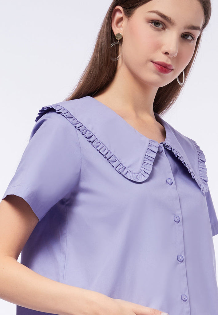 Wide Collar Short Sleeve Blouse